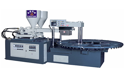 等進料到達設定量后才有慢速鎖模動作。鎖模停止后,執(zhí)行射料、開模動作。若現(xiàn)在模位不使用,按自動啟動鍵,則圓盤運行往下一有使用的模位,TPU鞋底機