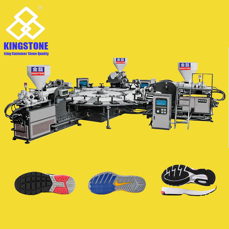 公司研發(fā)的全自動(dòng)發(fā)泡成型機(jī),這種機(jī)臺(tái)可以生產(chǎn)雙色或三色的鞋底,有效的解決了傳統(tǒng)制鞋中多色鞋底需要膠水的問題,這樣可以減少膠水對(duì)于人工的損害,而且可以減少不少和人力成本,為制鞋企業(yè)創(chuàng)造更大的效益。